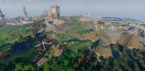 让建筑风格平滑过渡,使整体视觉效果更自然 目前主要划分为两大区域——建筑区工业区