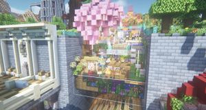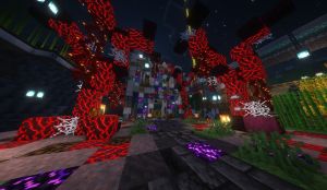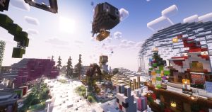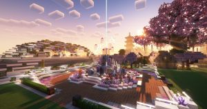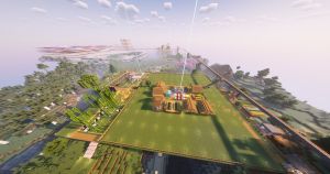 在鸟居门的位置可以看见莱茵的海滨高楼,灯塔及铃兰雕像(由于服务器视距限制,可能看不到,推荐安装bobby模组增加客户端视距)