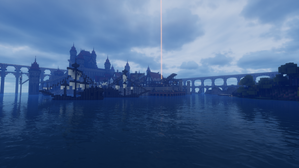于2023年8月开始建设阿斯拜尔-盐风港区,当时未进行镜像服务器的投影,全靠想象力完成了港区,在2024年7月左右完工,后面进入城堡的规划。
