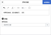 | 2022年12月22日 (四) 21:02 | VisualEditor references list dialog.png (文件) | 8 KB | 可视化编辑器的“参考文献列表”对话框 | 1 | |