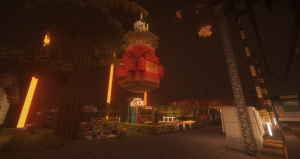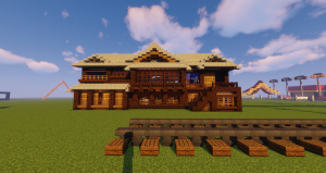天守阁虽然是东岛上第四个建筑物,但是直到现在也尚未完工,并且中间有好长一段时间(至少持续俩月)是未封顶的状态,由于笔者野心过大,一个东西做着做着无聊了,就立马想去做别的,一边忙着新神社一边忙着天守阁,又和yugiri一起改造地形收集材料,援助疯狗的德意志大会堂(反动建筑,戏称),无论做什么都会三心二意的笔者用了巨久的时间也没有彻底完成这个建筑,但是会完成的,(在寒蝉鸣泣之时)