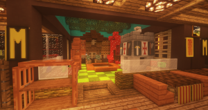 这算是文岛第二个公共设施了(其实文岛居民啥都是公共的,自家箱子也是,但仅限文岛居民),铁匠铺内提供各类型钻石工具,以及若干金制护甲和弓箭钓竿