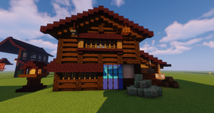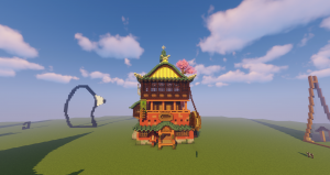 继33之后第二位来到文岛的居民便是CheeN小朋友,(当初就是他骗劳资入这个服的)入服以来先后在西岛和东岛都造过建筑,可能是出于自己作为高分玩家的自尊心,所以不能容忍自己做出不符合自己审美的建筑等原因,造的5个建筑拆了4个,最后只在东岛留下了一个和风民居(现东岛和风一町目),直到被CheeN疯狂安利的那个好友入服,这才开始了CheeN的afk生涯(没错,正是笔者)。下图便是橙家居,也是东岛第一个人工建筑。(周遭因笔者图方便砍树,结果环境被弄得乱七八糟,且到处都是捕兽夹)可惜因建造位置妨碍了笔者对于东岛发展的计划,所以面临拆迁的风险,或许到时候可以找op来搬迁一下?