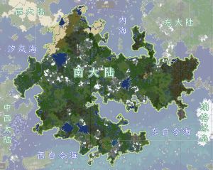 南大陆北邻内海,东北和东部与东大陆相接,东南隔海峡与纳格冰岛相望,南邻东白令海与西白令海,西南与中西大陆相接,西北与汐岚海相邻,西北与西大陆相邻。