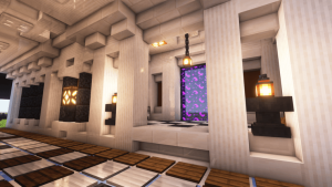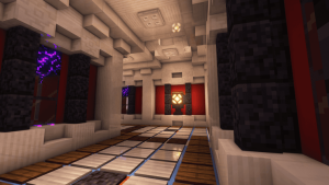 - 3.站台,在直道基础上稍加修改即可,要求与基本直道一致。设计中需包含减速带与地狱门,地狱门的大小与放置位置(中间或两侧)与减速带的材质及摆放形式皆可自行设计。当基本模板长度太短时,可为了展示减速带设计延长冰面(无需延长墙与顶的设计)。无需激活地狱门,有黑曜石框架即可。