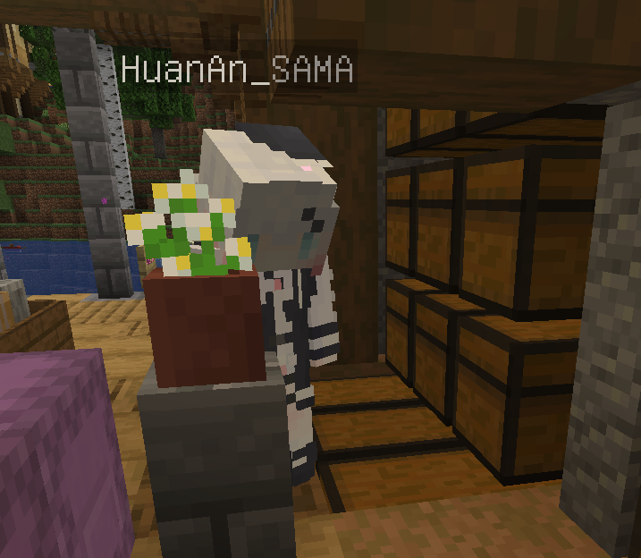 一个刚刚拆掉了仓库承重柱的粉色头发少女 头顶的ID是HuanAn_SAMA