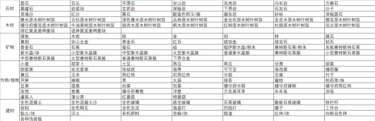 时际产物列表
