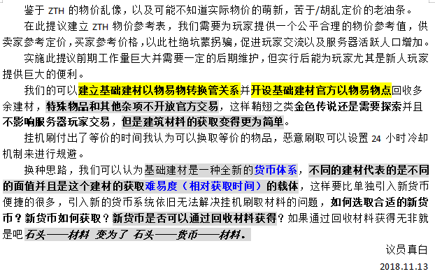 这两个议案在众多人员参与的讨论中最终演变为了“优化ZTH世界的经济,解决现存不便之处”。